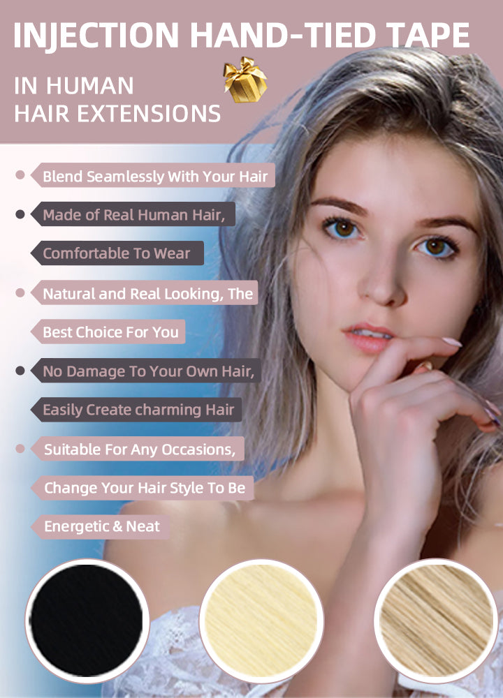 Vlasy Injection Hand-Tied Tape in Hair Extensions 16Pcs Virgin Human Hair (Light Blonde #60A)
