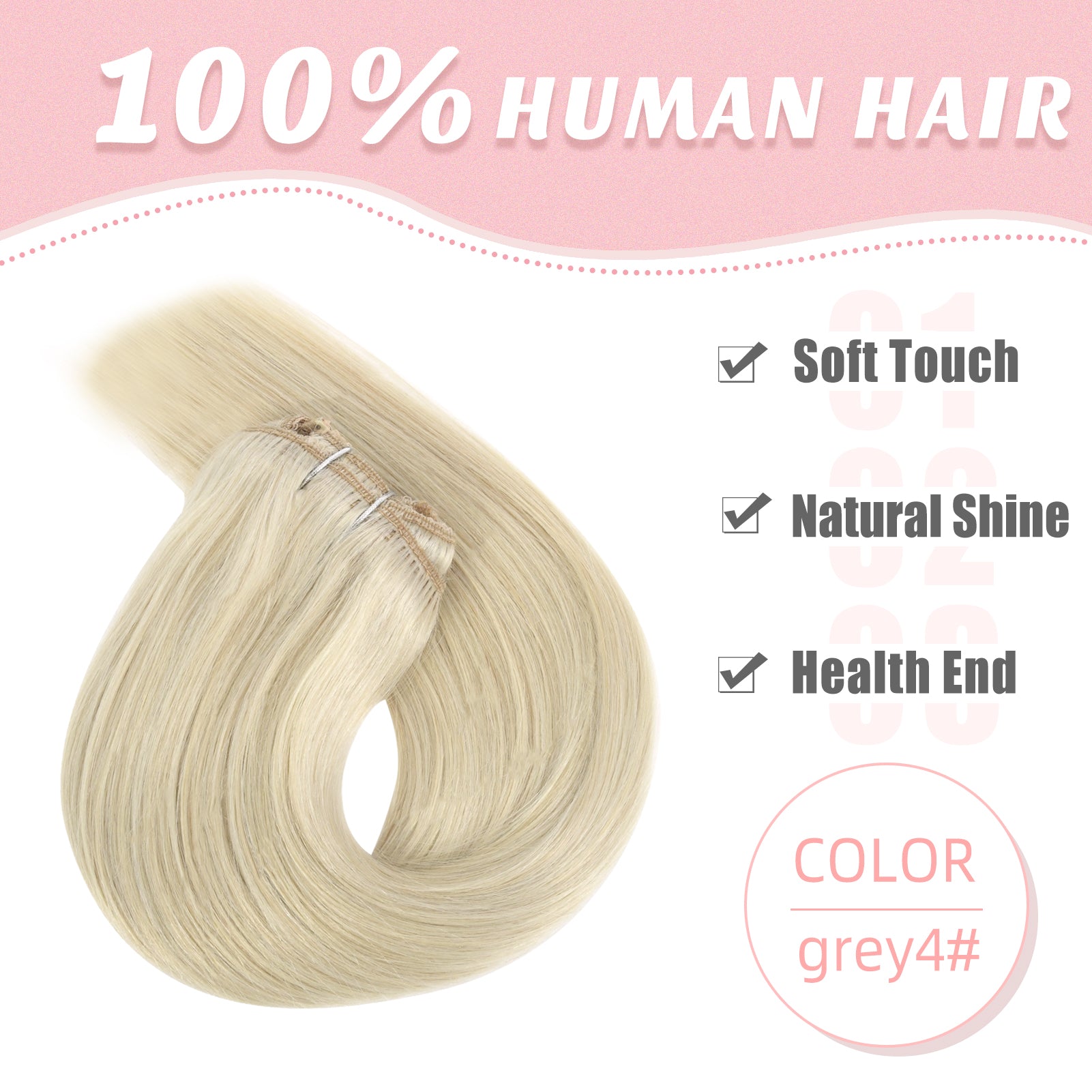 Vlasy 7pcs/set Clip in Extensions 100% Remy Human Hair Grey (#Grey4)