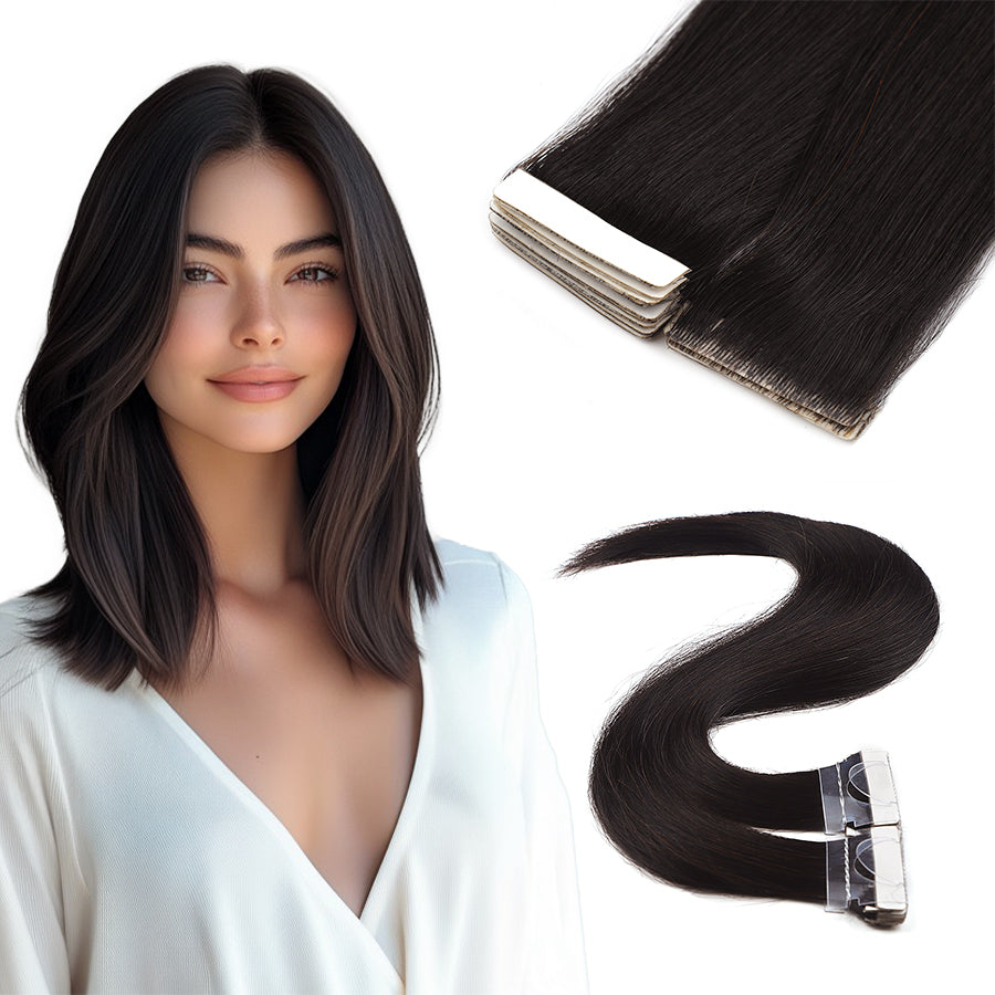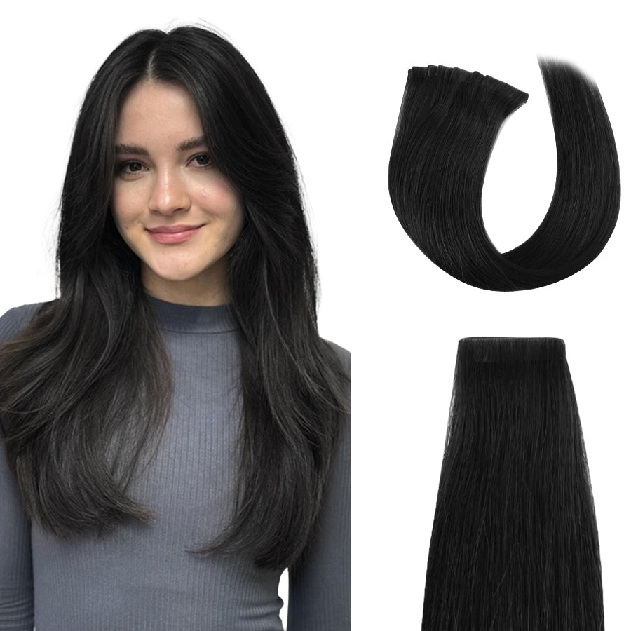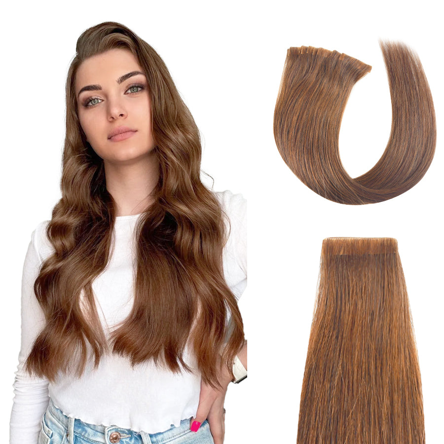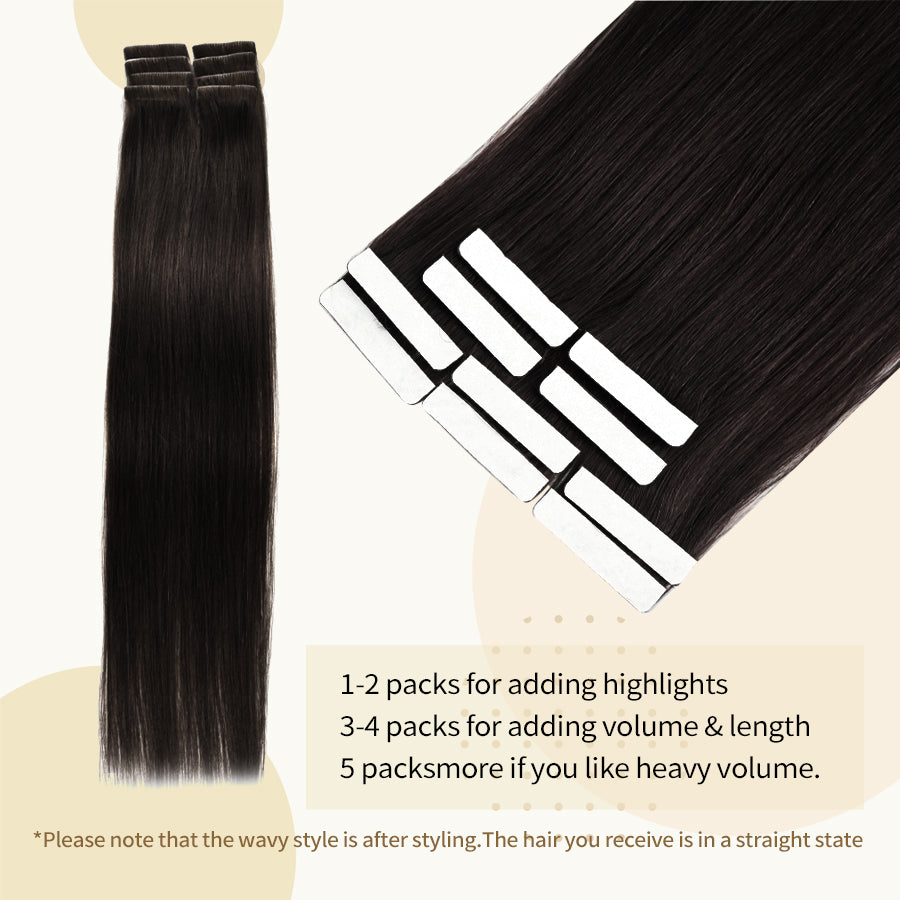 Vlasy Injection Tape in Virgin Human Hair Extensions 12''-24" Hand-Tied PU Skin Tape Hair Extension Straight 16Pcs Invisible Adhesive Tape Ins