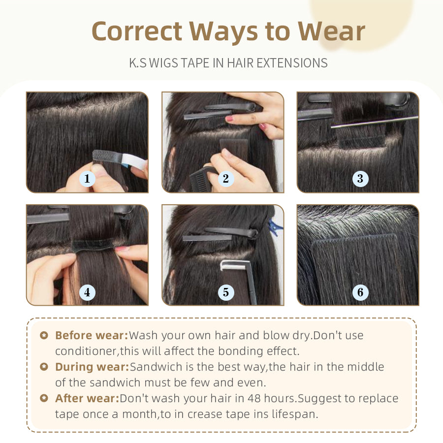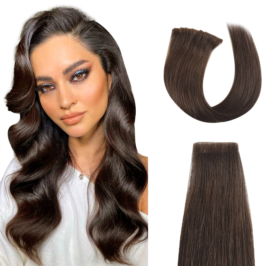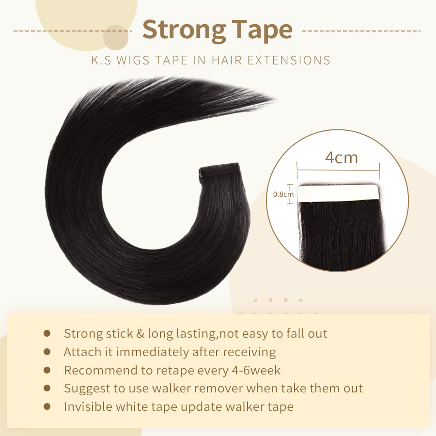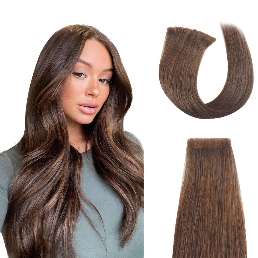 Vlasy Injection Tape in Virgin Human Hair Extensions 12''-24" Hand-Tied PU Skin Tape Hair Extension Straight 16Pcs Invisible Adhesive Tape Ins