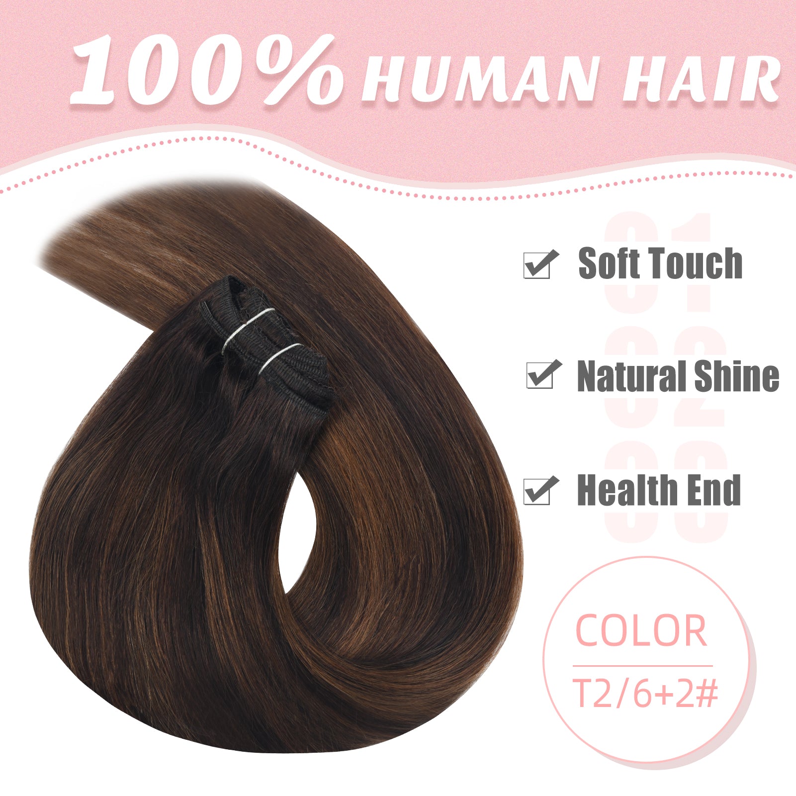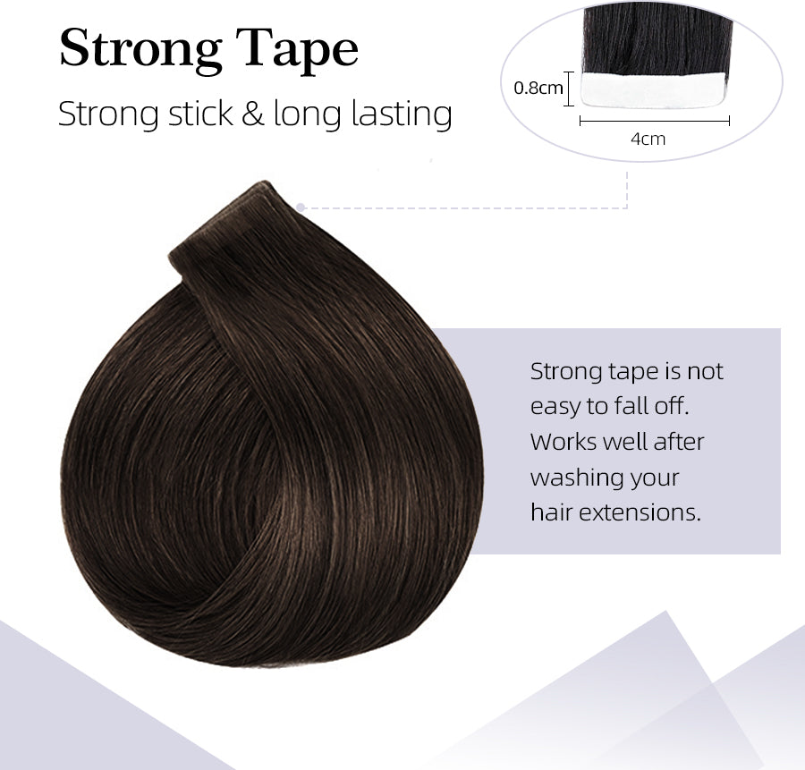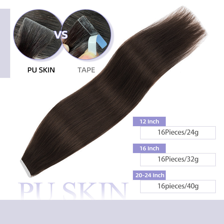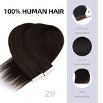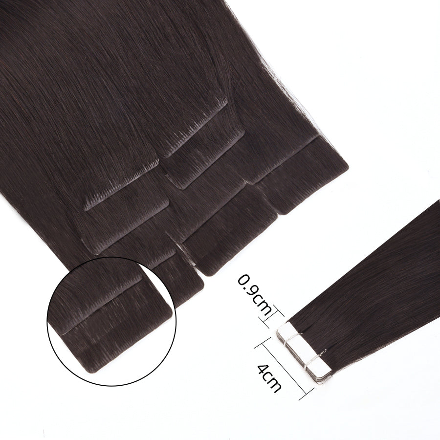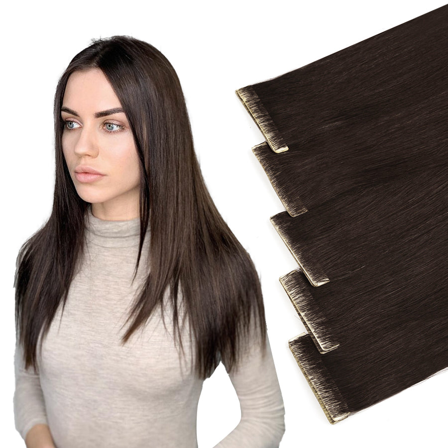 Vlasy Injection Hand-Tied Tape in Hair Extensions 16Pcs Virgin Human Hair (Darkest Brown #2)