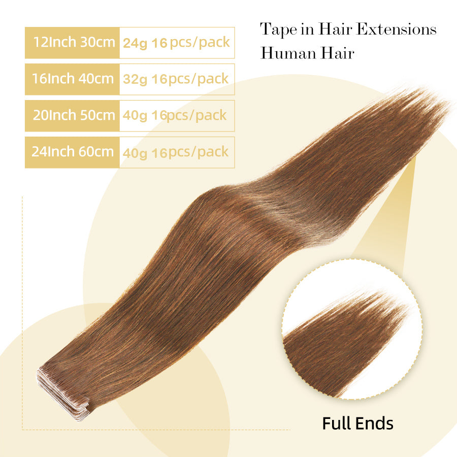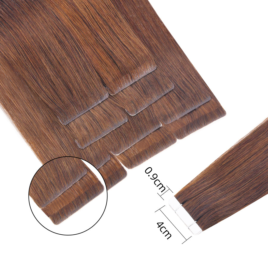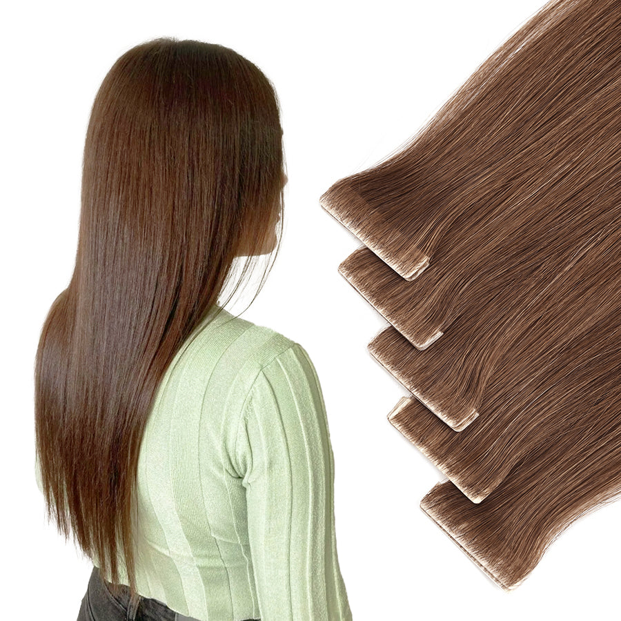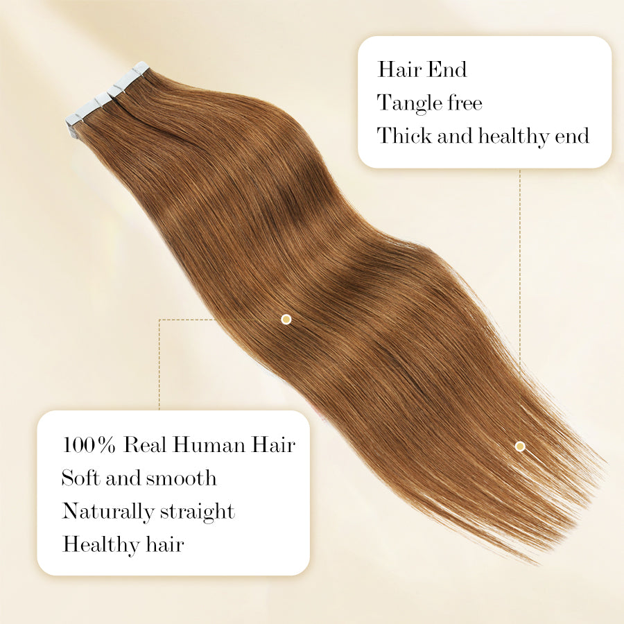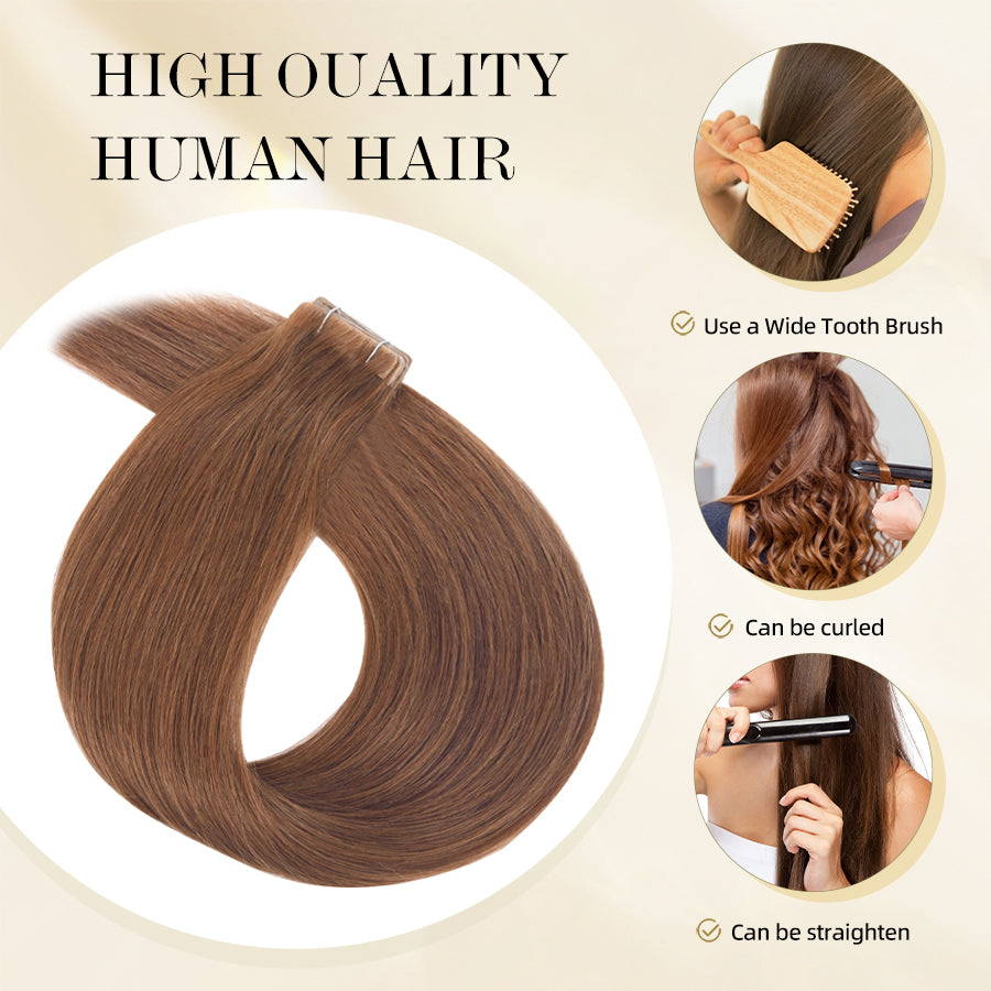 Vlasy Injection Hand-Tied Tape in Hair Extensions 16Pcs Virgin Human Hair (Light Brown #8)