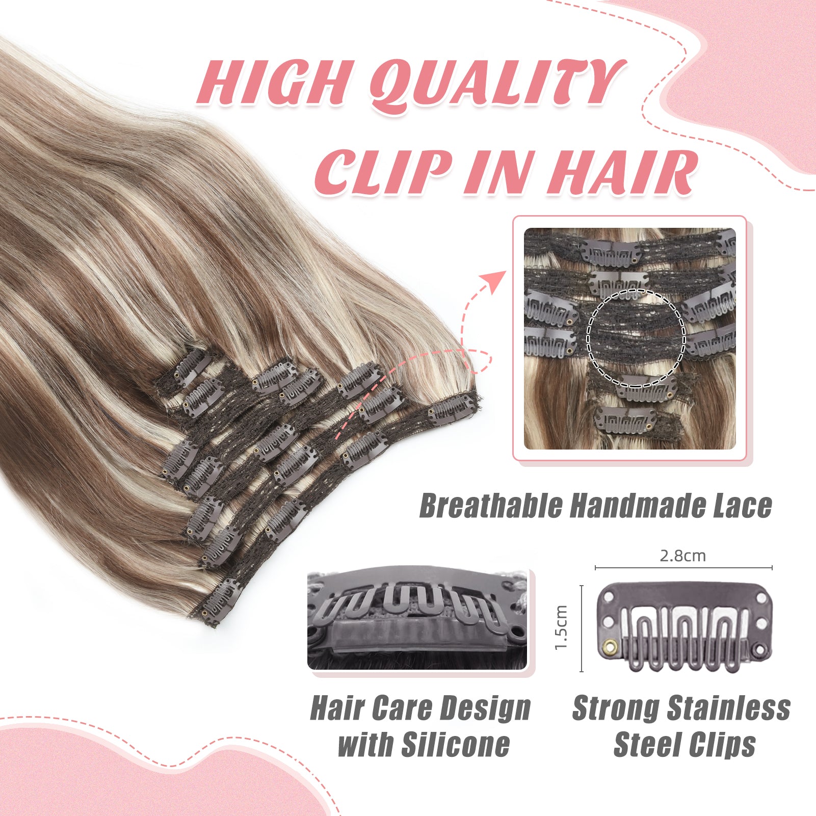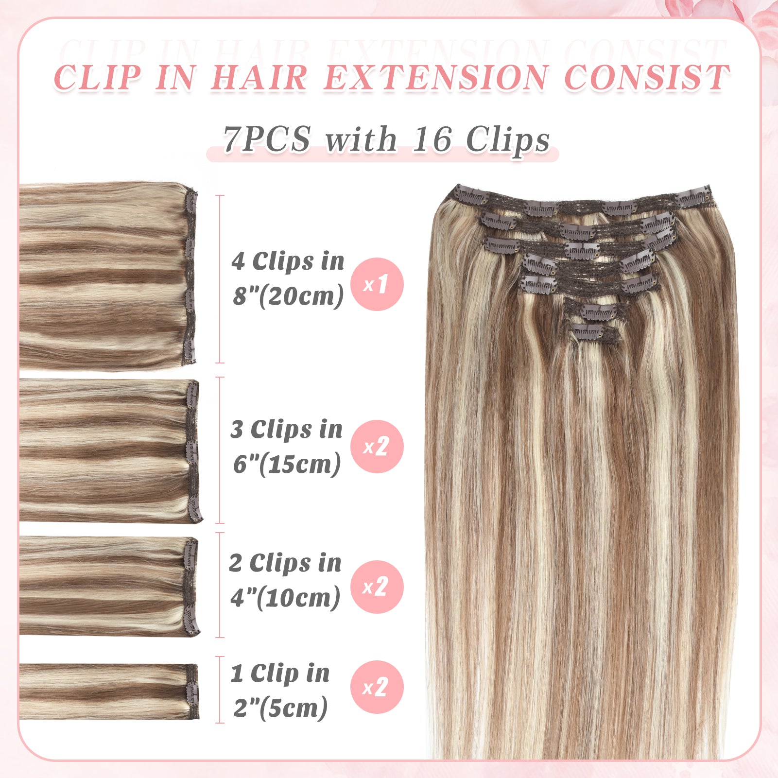 Vlasy 7pcs/set Clip in Extensions 100% Remy Human Hair (#P16/60)