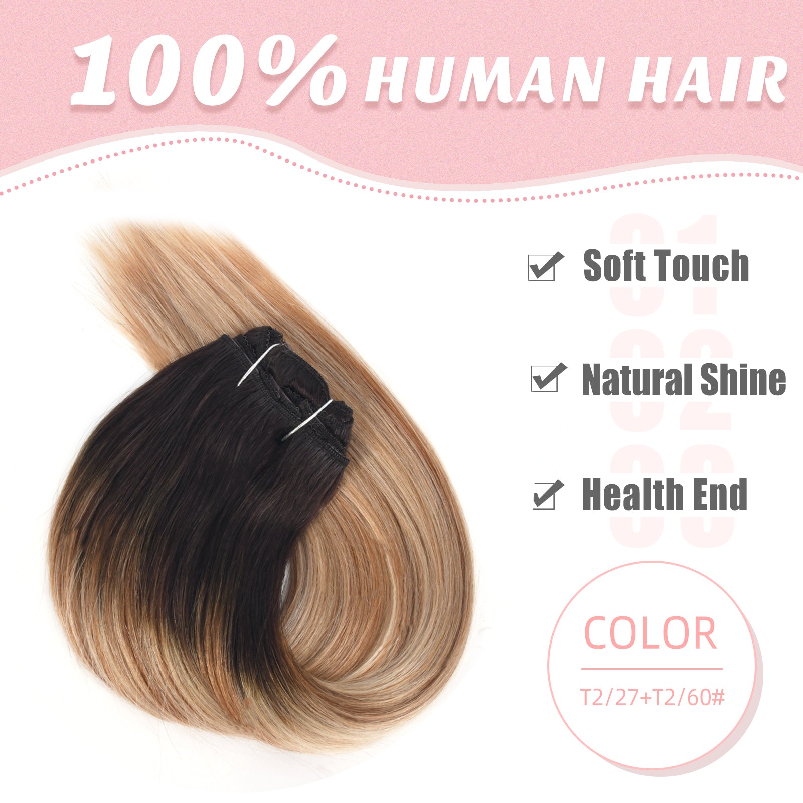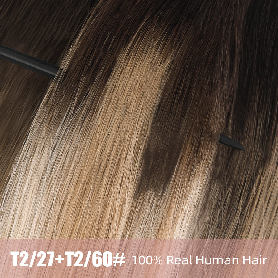 Vlasy 7pcs/set Clip in Extensions 100% Remy Human Hair (#T2/27+T2/60)