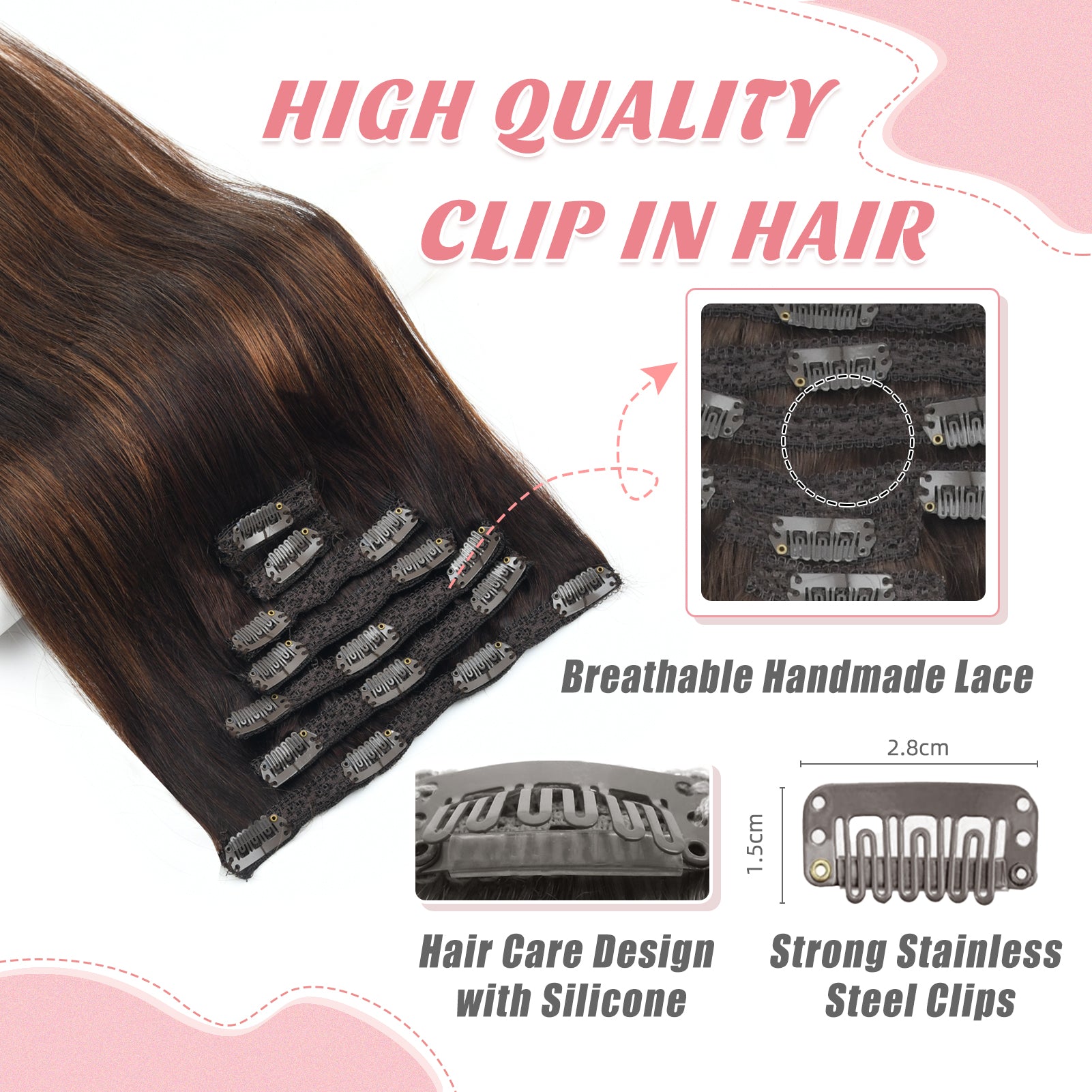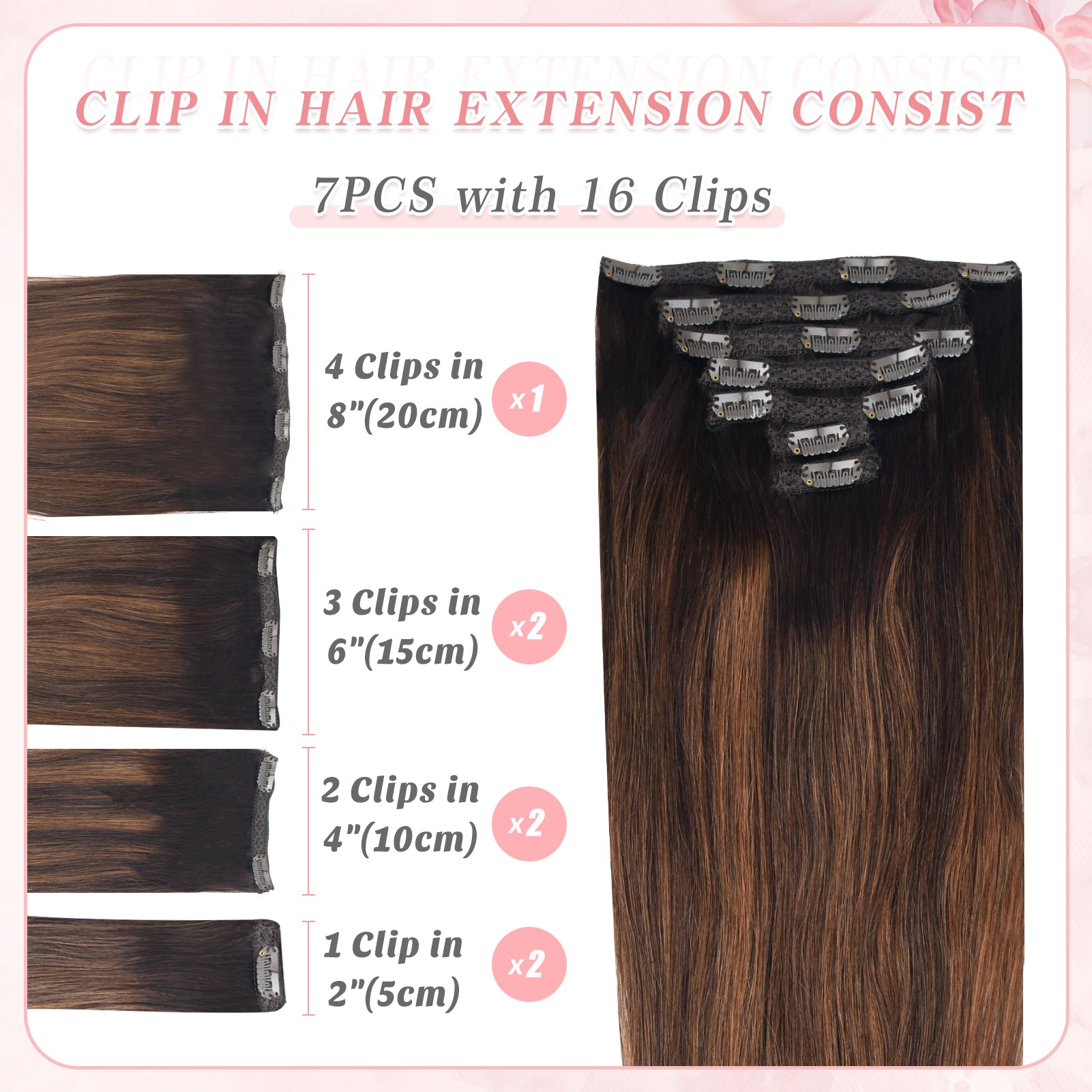 Vlasy 7pcs/set Clip in Extensions 100% Remy Human Hair (#T2/6+2)